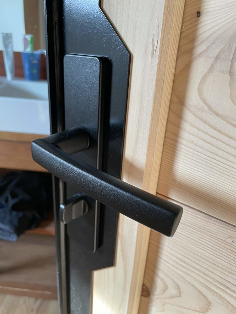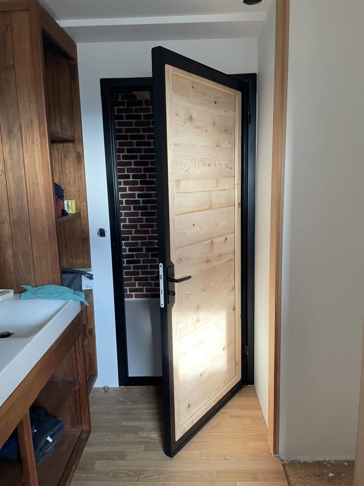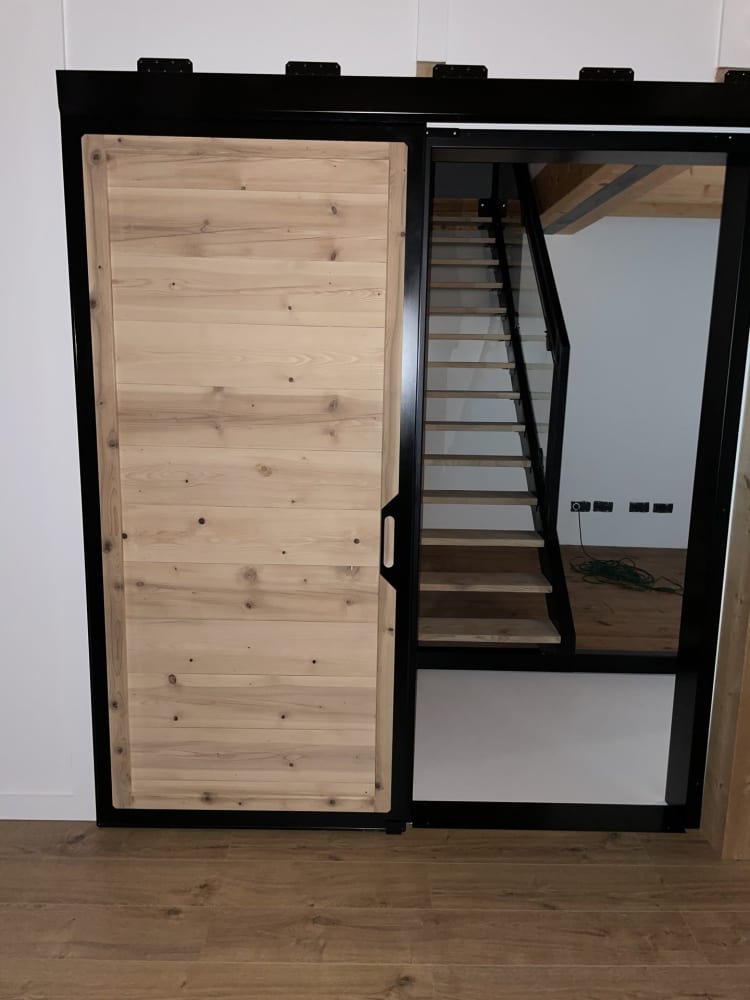 Portes structure acier découpé au laser thérmolaqué noir + bois mélèse