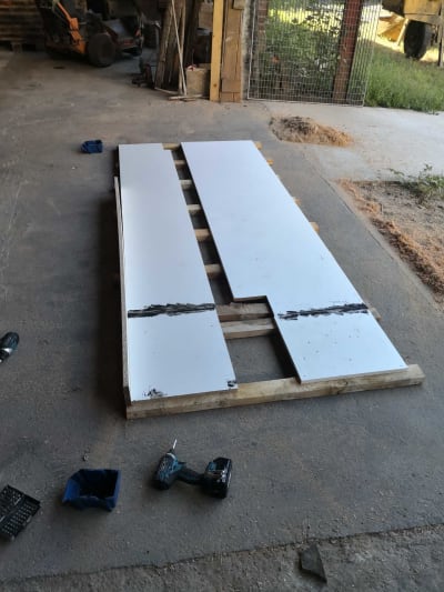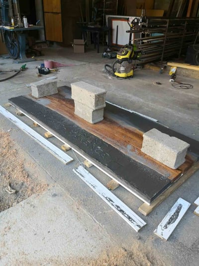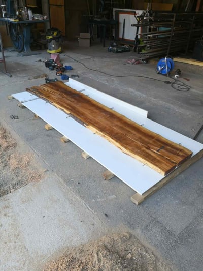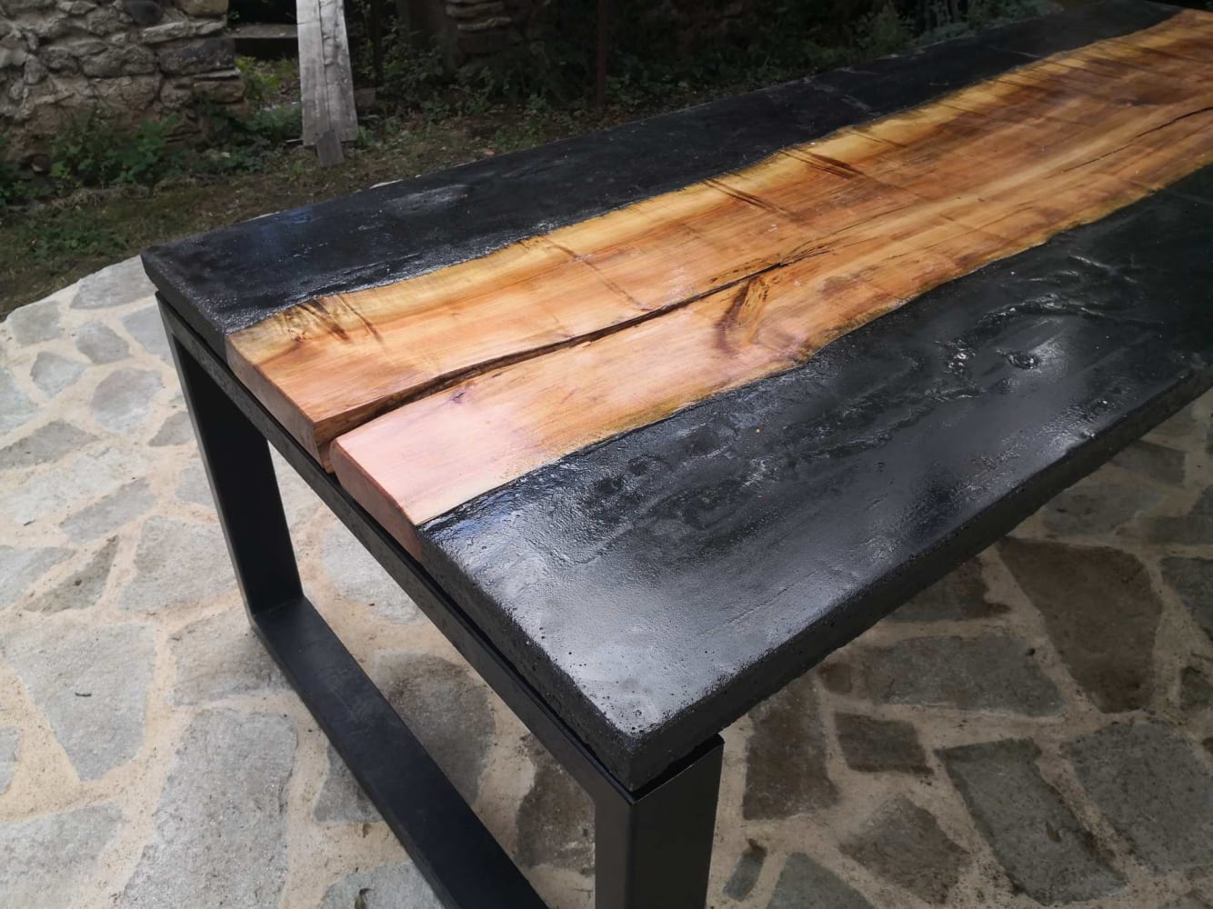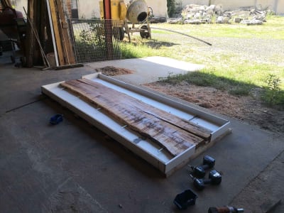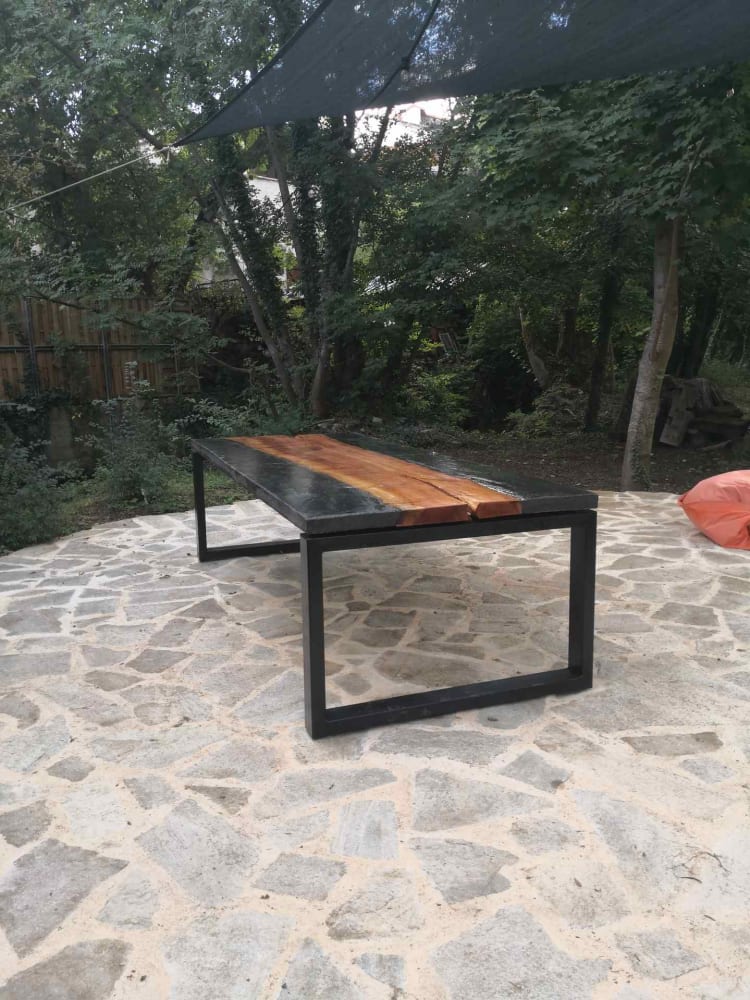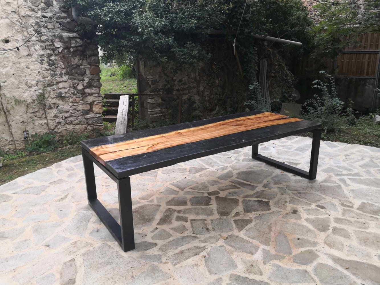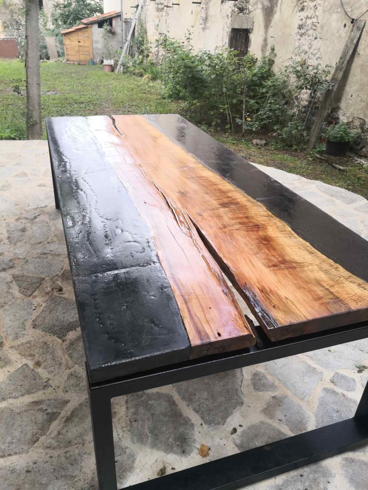 Table - Remise à neuf plateau 100 ans et fabrication de pieds en acier