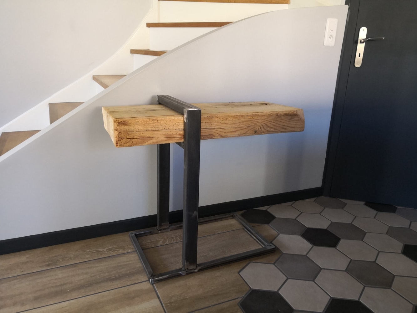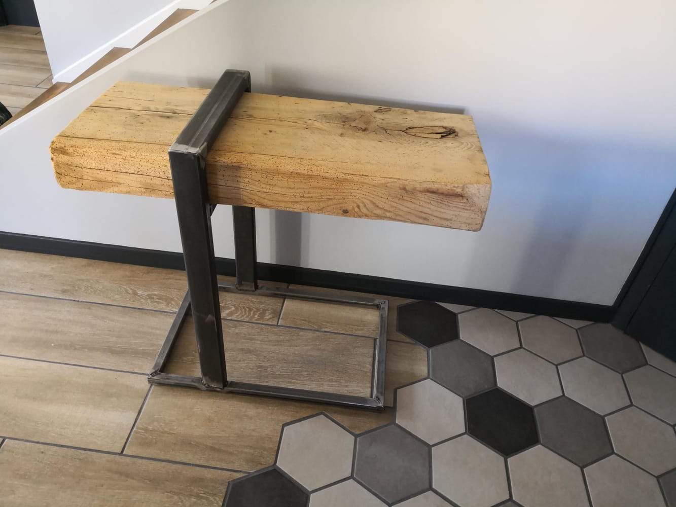 Table - Remise à neuf plateau 100 ans et fabrication de pieds en acier